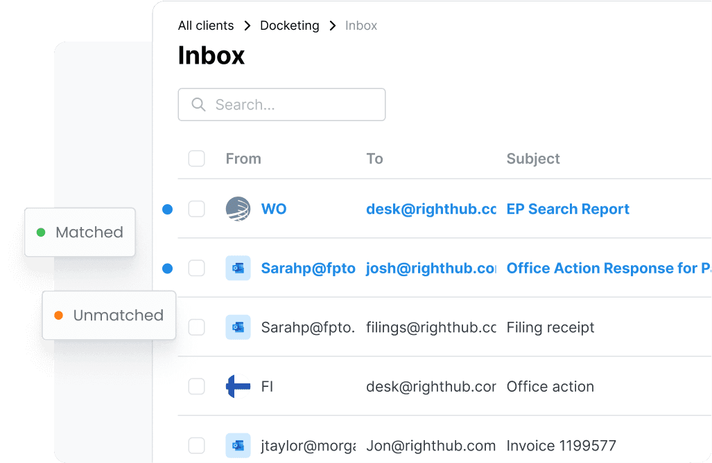 Automatically connects incoming communications and documents to the correct IP cases.