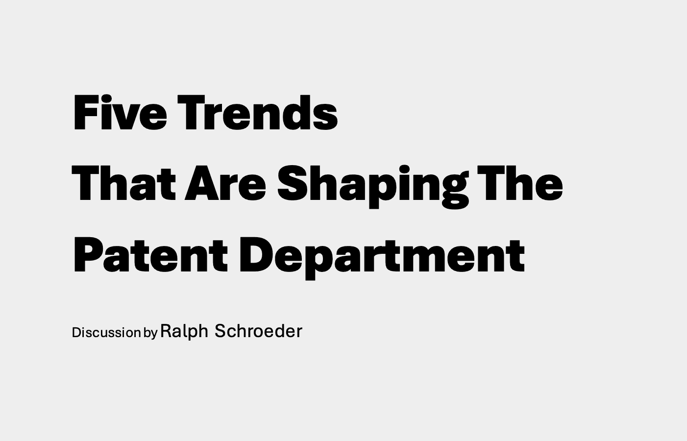 In the rapidly evolving landscape of intellectual property management, patent departments face increasing demands for efficiency, integration, and operational innovation. As technology advances—driven most recently by AI—and global competition intensifies, the need for a transformative approach to patent operations becomes imperative. This discussion presents five important trends that are redefining patent department operations. These trends, fueled by technology innovations and new operating models, promise to streamline processes, enhance collaboration, and optimize the management of intellectual property. By building capabilities consistent with these trends, patent departments can achieve significant competitive advantages and operational excellence.